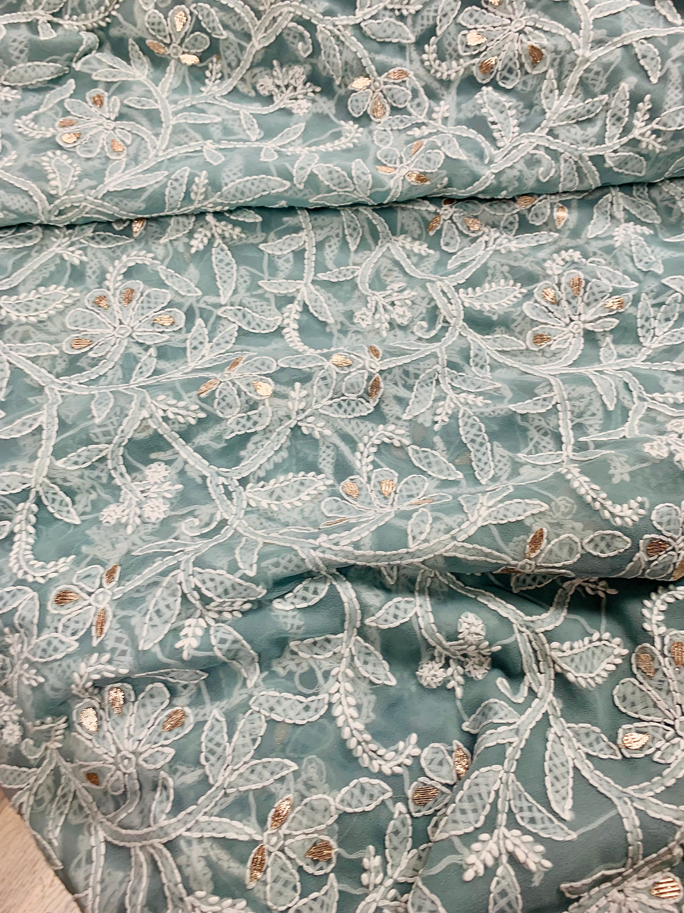 Pure Chiffon Hand Embroibery Chikan kari Lakhnavi work Saree